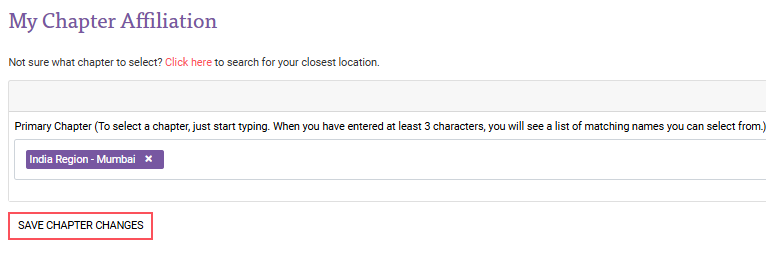 Subject: Choose your primary chapter as "India Region - Mumbai