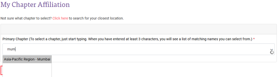 Select Your Chapter you chapter as Asis-Pacific Region - Mumbai